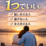 2026年1月16日 / 最終更新日 : 2026年1月16日 関口久美子 ブログ 譲れないものって、1つあれば良くない? 「譲れない条件は何ですか?」 婚活の初回カウンセリングやプロフィール作成で、必ず聞かれる質問です。そして多くの人が、こう答えます。 ……いや、多くないですか? 今日は、少し耳が痛いけど本質的な話をします。 譲れないものが […]